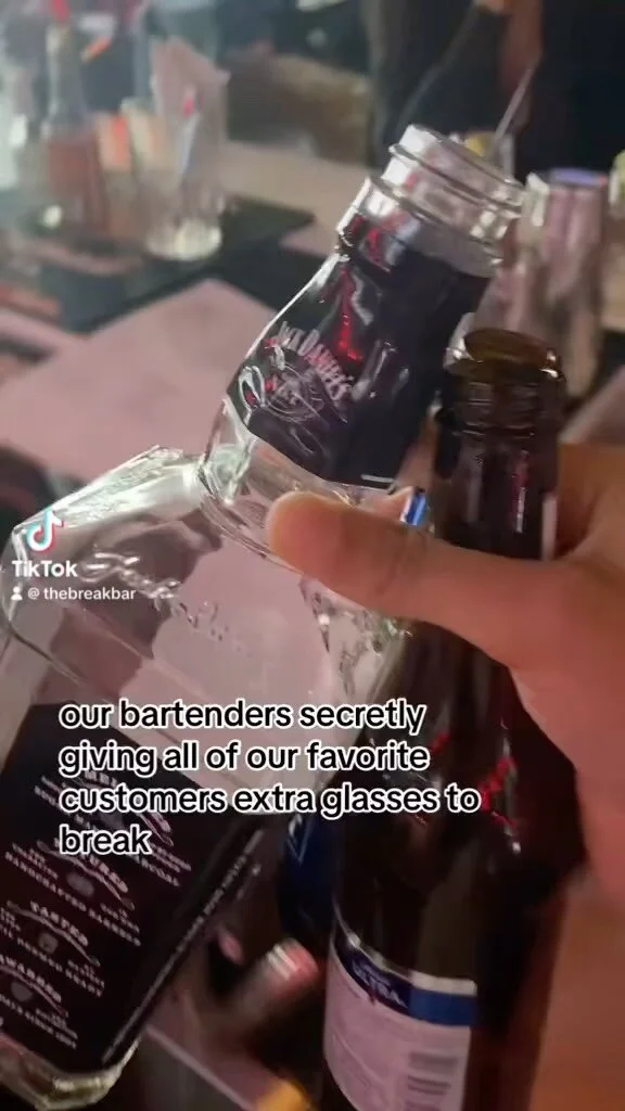 The Break Bar is everything youβd expect from any other bar with a BIG TWIST (OR SMASH). Here, when you are done with your shot, pint or wineβ¦you smash the glass. Enter our throwing rangeβ¦We have targets set up with bells, public figures, and many other cool targets that you get to smash your glass against.